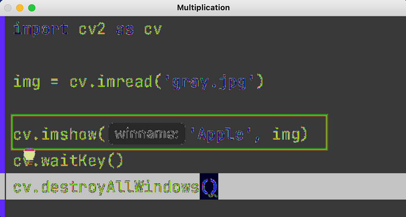cv.destroyAllWindows()As you can see, we have two additional lines at the end of the file. These code lines are needed to stop the execution of the program.