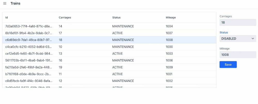 Let’s add some interactivity to update trains; we already have a backend for the update operations.