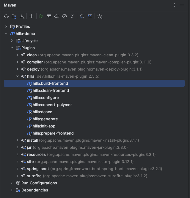 After that, we may run the Hilla maven plugin to generate the required for fronted structures.